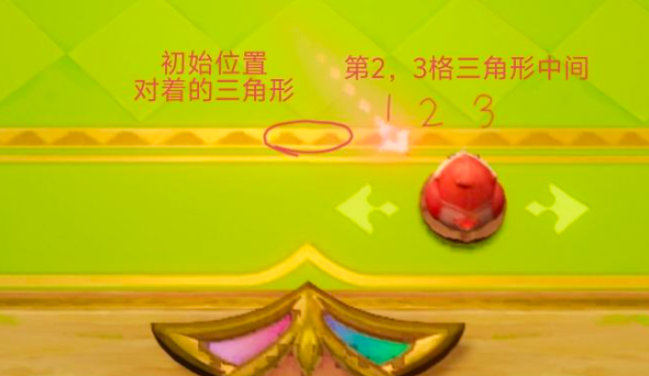 4、准备发射!等指针对准正上方三角形弹板的右边时,深吸一口气,蓄满力!没错,就是它!瞄准,发射!(如果还是找不到,看下图,包你满意!)
