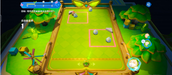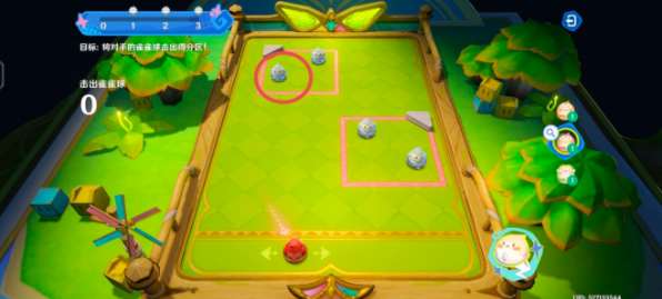 把橙色雀雀球移动到框内蓝色雀雀球的正下方,等指针转到正中间的时候,开始蓄力,建议蓄力3/4,让橙色雀雀球给蓝色雀雀球一个“爱的飞踢”,把它踢出框外!