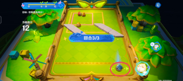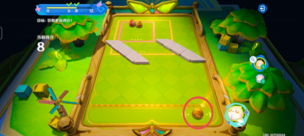 同样把橙色雀雀球移动到框内蓝色雀雀球的正下方,等指针转到正中间的时候,开始蓄力,这次蓄力1/2就够了,说不定会弹反进框哦!