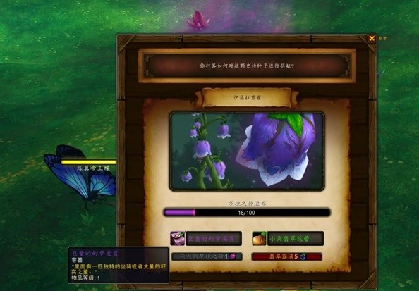 翡翠梦境里散落着18个梦境之种壤土,你可以随意选择一块,右键点击背包里的梦境之种进行播撒(或者在别人正在种植的时候,直接点击植物捐献种子,蹭一波经验)。