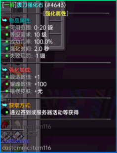 拔刀强化,独家秘方!用拔刀强化石来提升你的宝刀,让它更加锋利,一刀一个小朋友!
