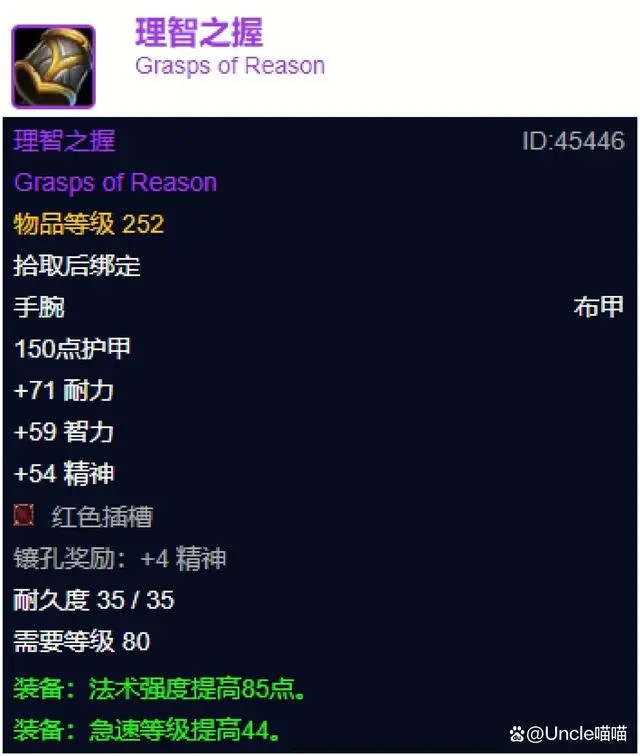别看它只是个护腕,拆解者的理智之握绝对能让所有法系DPS瞬间失去理智,疯狂尖叫!这玩意儿简直就是奥杜尔出品的高端奢侈品!智力、耐力、精神,三大属性完美融合,还附赠一个骚气的红色插槽!更可怕的是,那恐怖的急速等级,再加上高达85点的法术强度,简直就是法系输出的福音!戴上它,让你瞬间化身人形炮台,输出爆炸!理智之握,绝对是这个阶段法系职业腕部装备的终极形态,最强王者!所以,想要变得更强吗?想要在奥杜尔横着走吗?那就努力攒金币,把这玩意儿拿下吧!