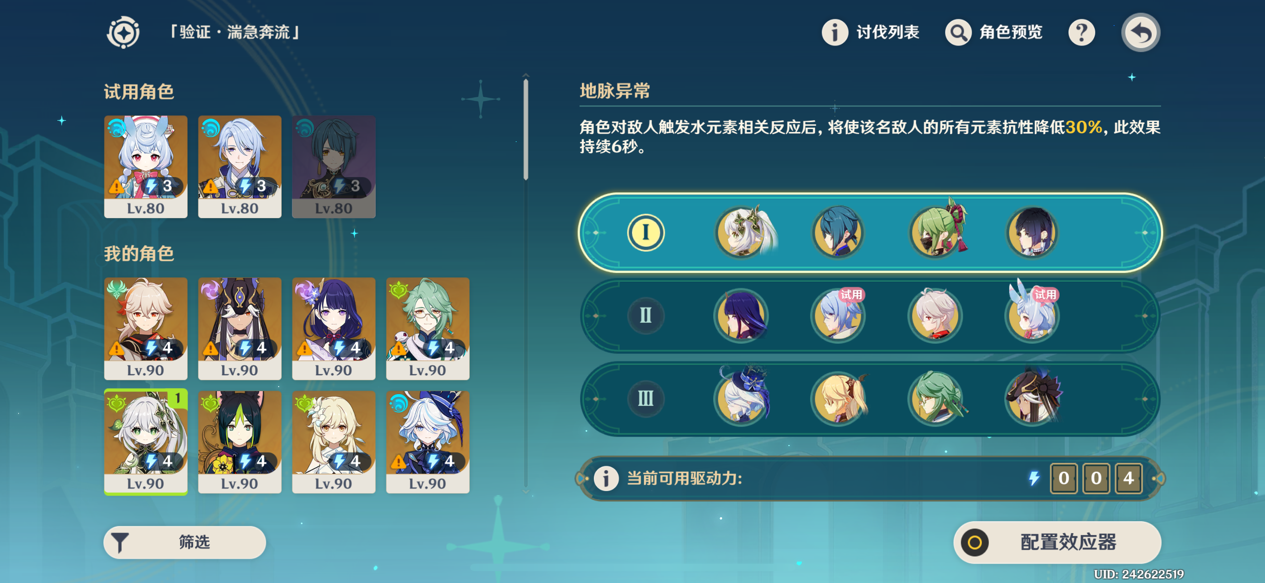 第二天的挑战,咱直接上绫人和希格雯这对新鲜组合。啥?你问我配队思路?别闹了,咱就是图个乐呵,体验一下平时抽不到的角色!反正这关难度嘛,也就那样,闭着眼睛都能拿满奖励,所以分数什么的,就随风去吧!