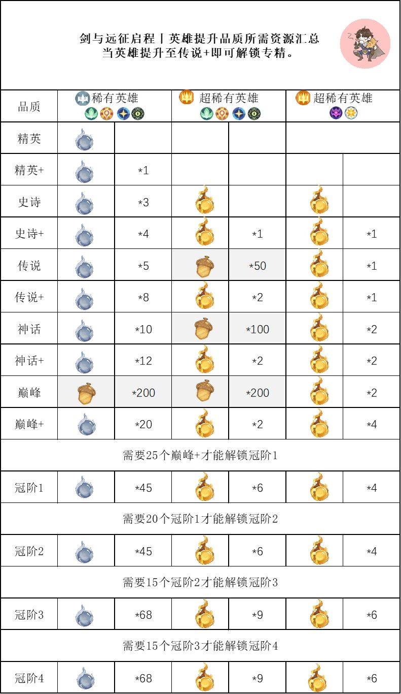 当然啦,不同级别的英雄,提升方式也略有不同。稀有英雄、超稀有英雄,还有那神秘莫测的神魔英雄,都有各自独特的“升级路线图”。别担心,下面这张图一目了然: