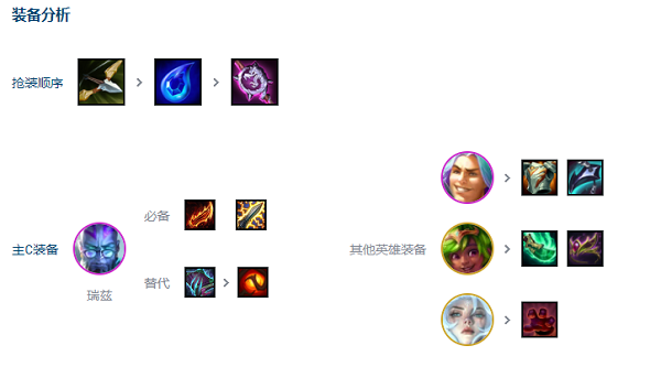 友情提示:优先喂饱瑞兹和塔里克,瑞兹要攻速和法强双修,塔里克要肉到对面怀疑人生。米利欧负责回蓝,泽拉斯就捡点剩饭剩菜就行啦!
