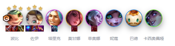 1、英雄构成: 波比、佐伊、塔里克、莫甘娜、菲奥娜、妮蔻、巴德、卡西奥佩娅。这阵容一摆出来,就问你怕不怕?