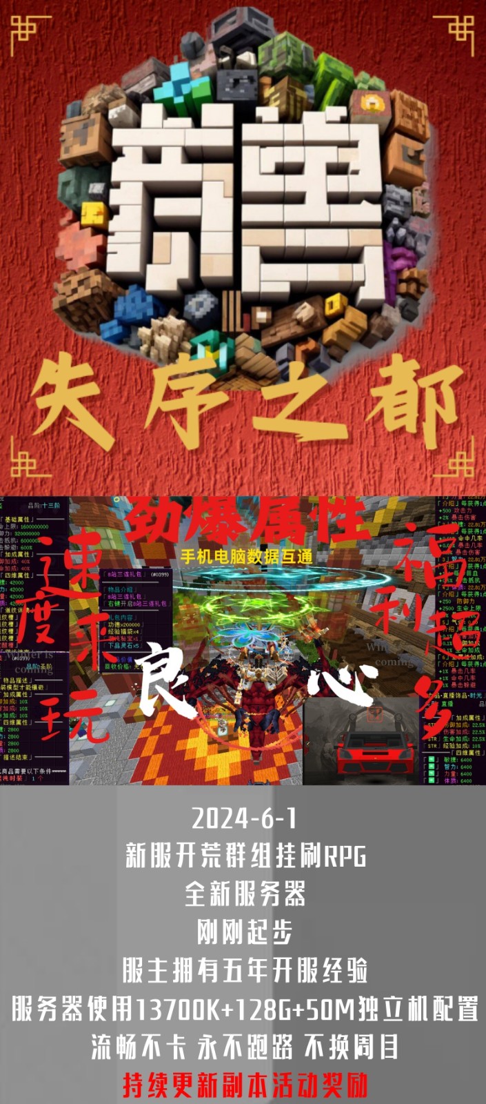 “失序之都”服务器,可不是那种按部就班的养老院模式!这里允许开G杀戮,让你体验一把真正的无法无天!还能飞行哦!简直是想上天就上天,想入地就入地,自由得像只风筝!更刺激的是,这里还有原创秒刷RPG玩法,让你体验心跳加速的冒险!十三本宏大的故事线持续更新,保证让你欲罢不能!总之,这是一个全新的服务器,绝对能给你带来前所未有的游戏体验!