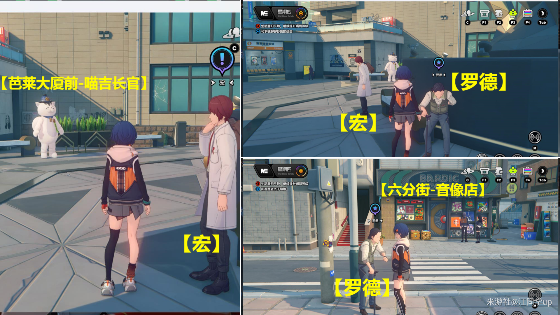 (1)首先,确保你已经完成了1.1版本的主线任务【独家视界:卧底蓝调】,不然就像没买票就想看电影一样,是不行滴!然后,传送到【芭莱大厦前-喵吉长官】那里。找到【宏】(如下图),和他聊两句。接着,再和【宏】旁边的【罗德】侃大山。最后,传送到【六分街-音像店】,再找到音像店对面的【罗德】——没错,又是他!和他聊完,恭喜你,就可以接到第3章【探索委托-昨日舞台·其一】(也叫芭莱魅影·其一)。是不是感觉像绕口令?