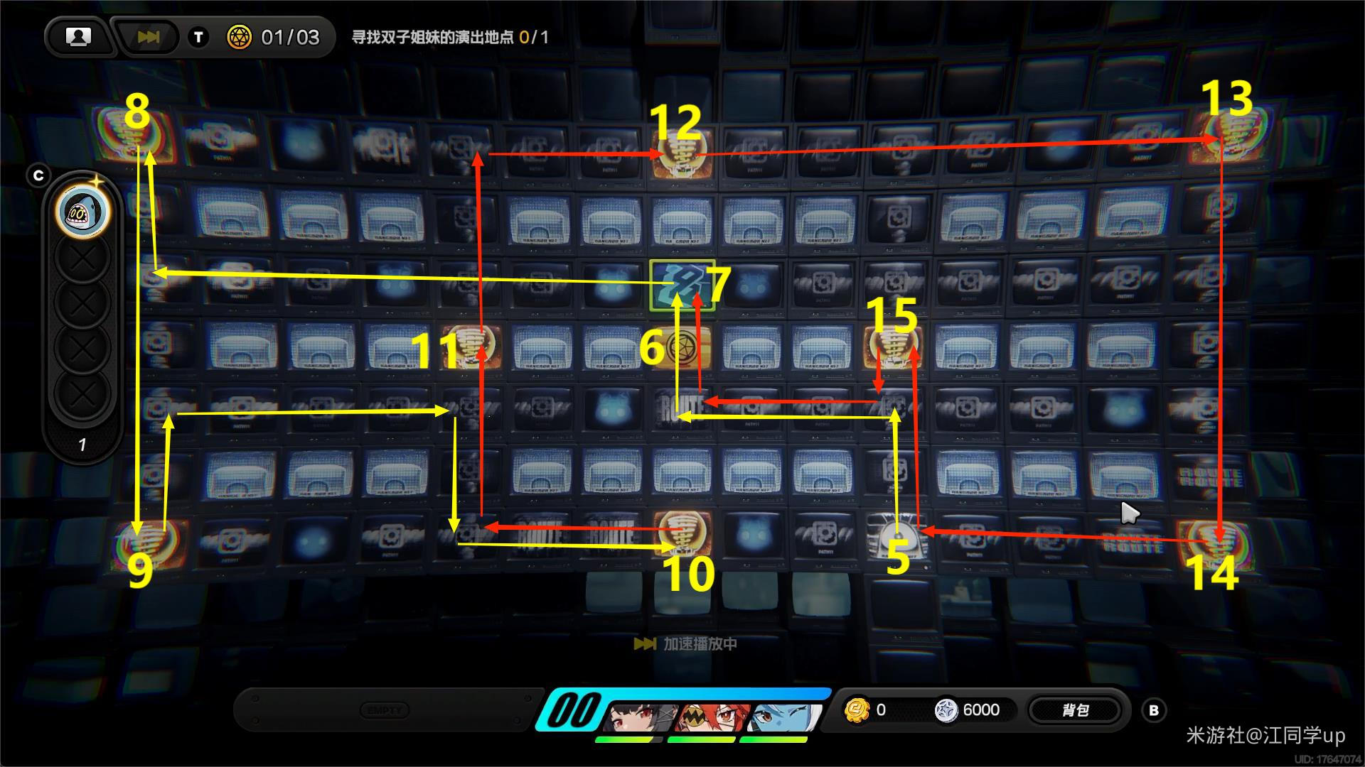 (2)接下来,进入副本,准备开始你的表演!先冲向1区域,然后一路向右,杀到2区域,清理掉那些碍事的家伙。接着,别忘了顺手牵羊,把3区域的宝箱收入囊中。最后,从4区域向上,直奔5区域。
