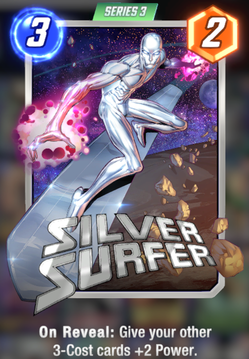 在《漫威终极逆转》里,银翼滑翔者的定位是3费2战力,效果是“揭示:你的其他初始能量消耗为3的卡牌+2战力”。简单来说,就是个3费卡的“啦啦队队长”,专门给其他3费卡加油助威。