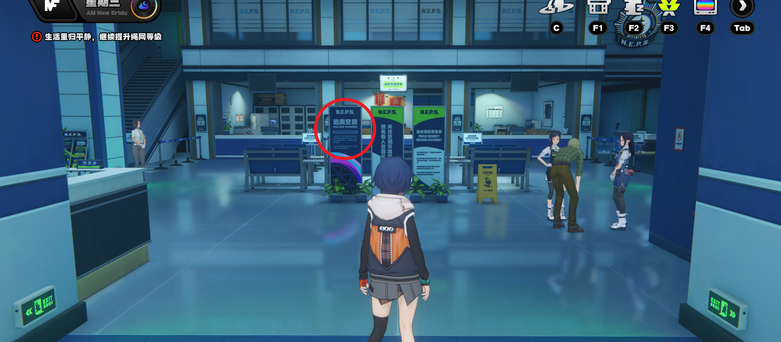 (1)首先,传送到新艾利都治安局,别急着打怪,先往左前方瞅一眼,那里有一张神秘的海报在等着你!没错,就是它!勇敢地调查它吧!