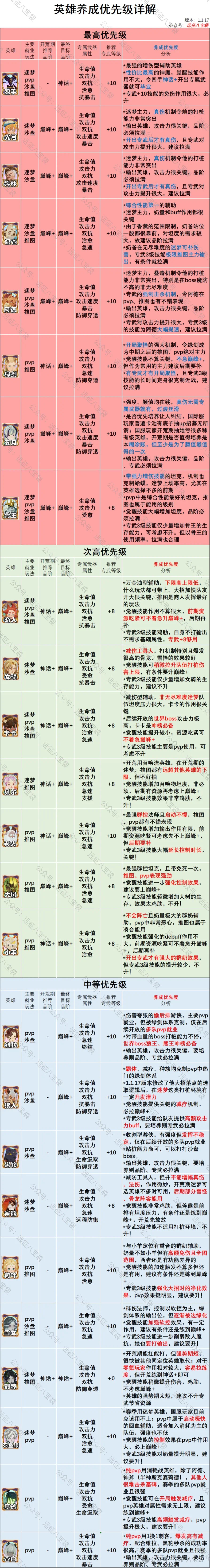 别担心,我已经帮你整理好了英雄优先级,让你赢在起跑线!请看下图,这份“英雄升仙指南”绝对值得你收藏!