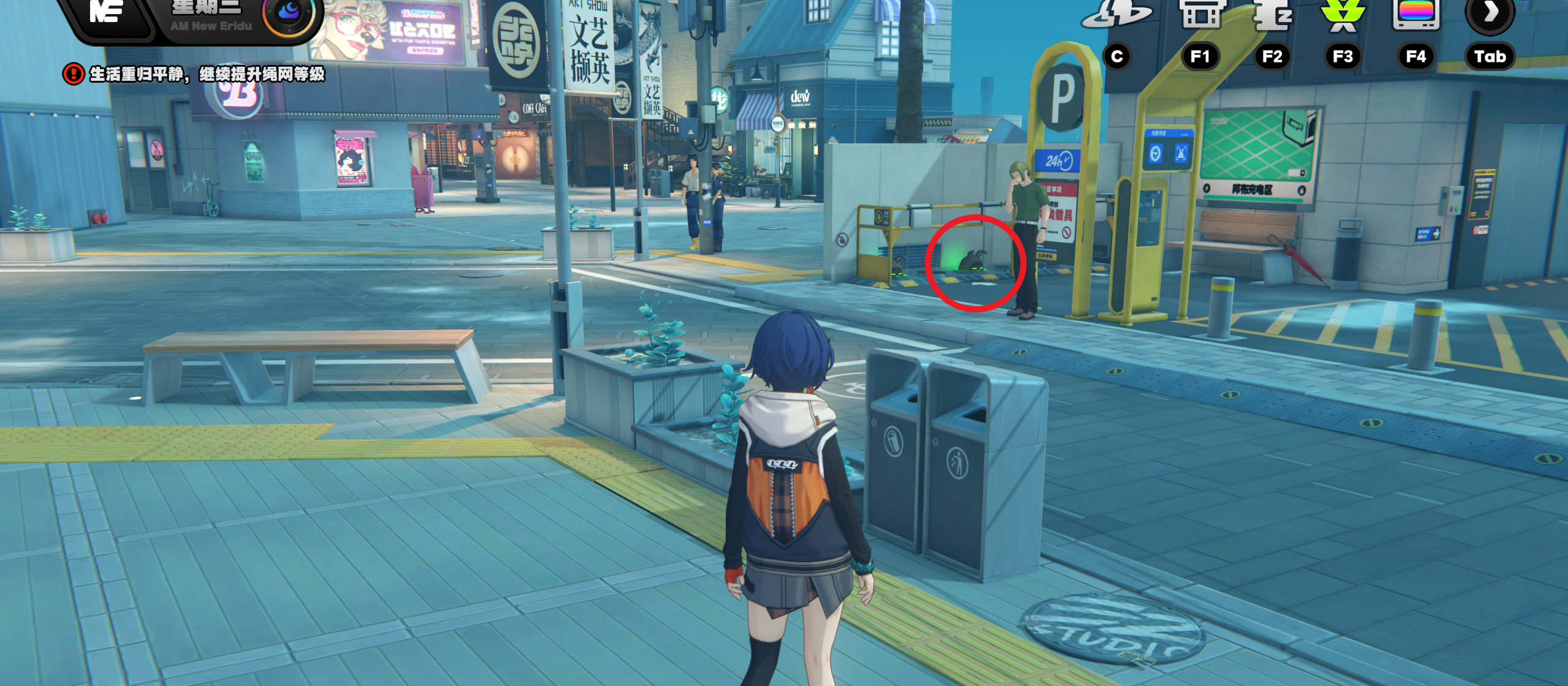 首先,我们要前往光映广场的步行区域。在那里,你会发现一个充电桩,以及我们今天的主角——邦布!(没错,就是它,别看它萌萌哒,它可是省电的关键!)