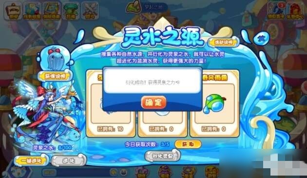 重点来了!当你的灵泉之水积攒到100点,就能解锁蓝漪水灵的超进化资格啦!是不是想想就激动?