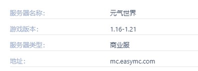 元气世界,听名字就让人精神一振!这里不仅能让你体验到原汁原味的生存乐趣,还能让你过上悠闲自在的养老生活。钓钓鱼,看看四季更迭,建造属于你自己的梦想家园,简直不要太惬意!服务器主打的就是一个“乌托邦”概念,各种优质模型让你眼花缭乱,还有公益活动等你参与,快来一起创造一个理想国度吧!