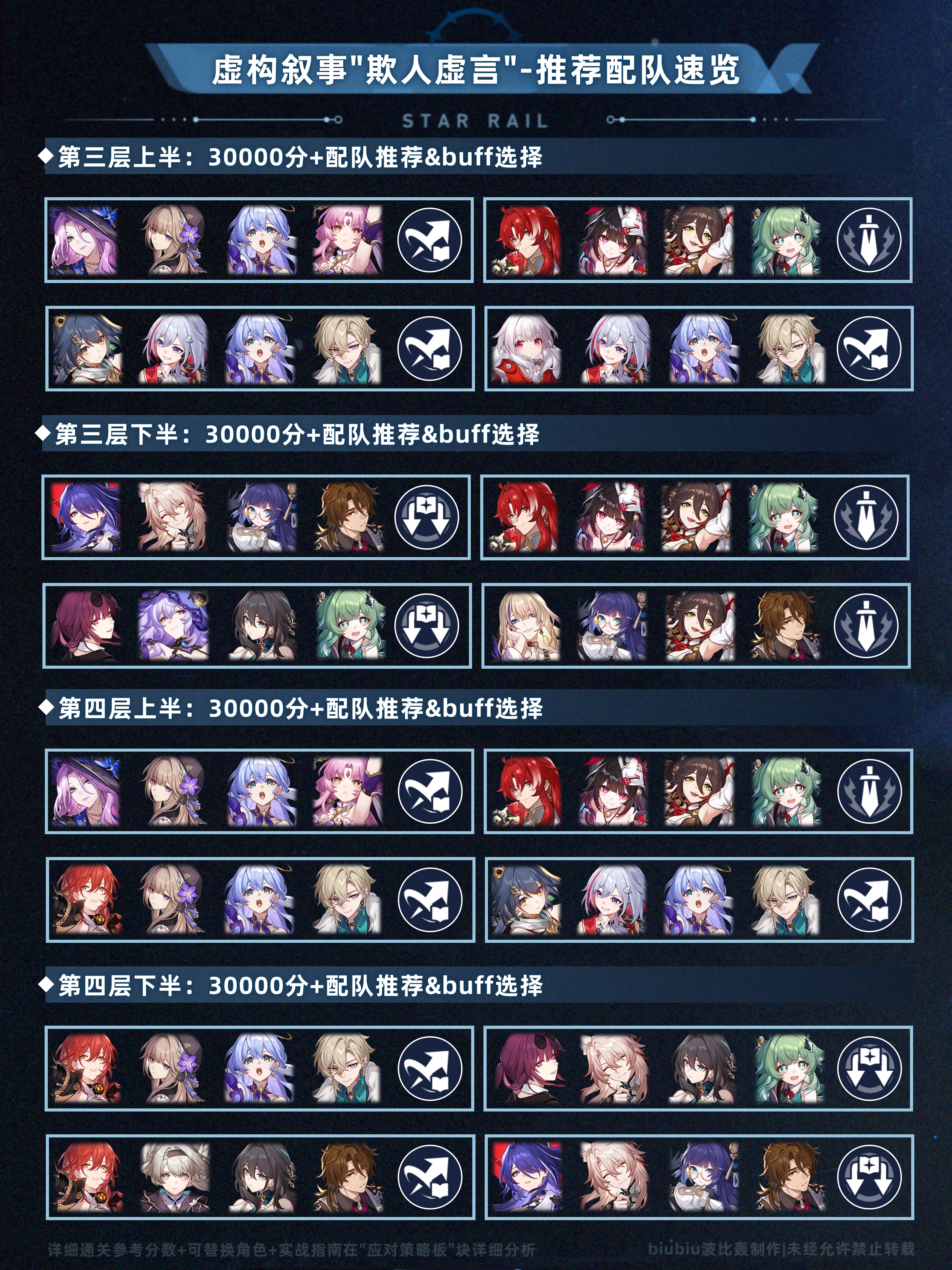 以上就是本次的队伍推荐,都是亲测有效,童叟无欺!(五星角色0+0,四星角色4~6命,属于中低练度)。想快速抄作业的开拓者们,赶紧拿走不谢!接下来,咱们就来深入剖析一下本期“虚构叙事”,让你知其然,更知其所以然!