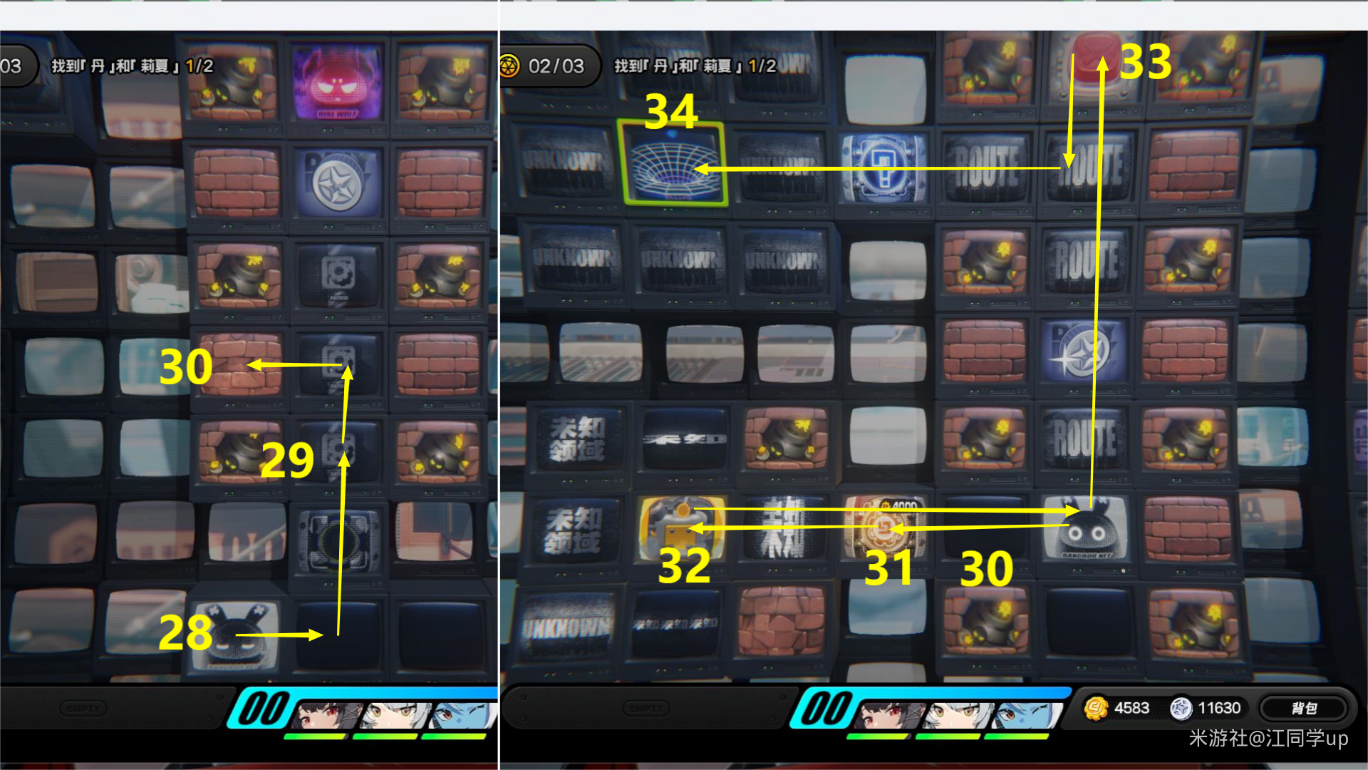 7. 区域29-34: 29区消灭从上面下来的怪物,然后撞开30区,打开31区的门,拿走32区的宝箱!如果齿轮硬币不够,就疯狂撞墙吧,墙里说不定有惊喜!最后,去上面的33区,然后传送到34区。