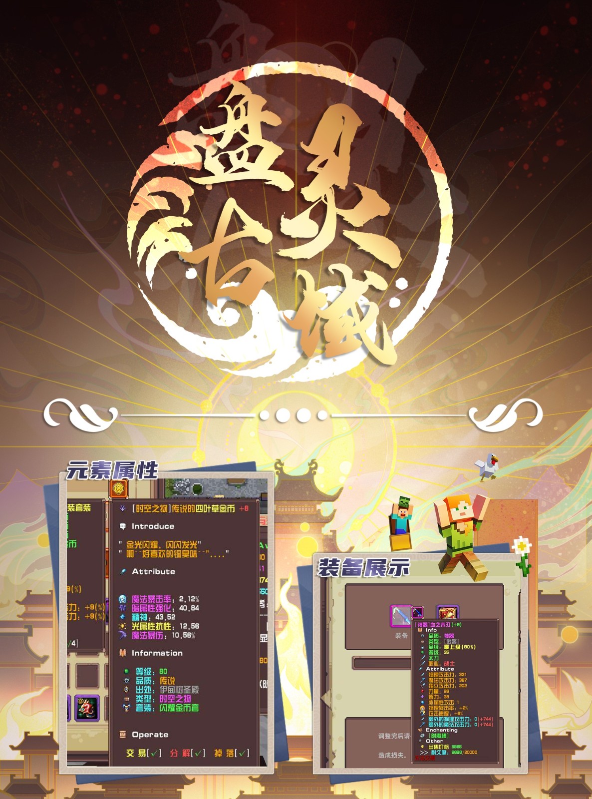 进入盘灵古域,你将会体验到:萌宠相伴,不再孤单;组队开荒,友谊万岁;属性称号加身,逼格瞬间拉满;仓库系统,妈妈再也不用担心我的背包爆炸;炫酷技能,一招制敌;史诗级任务剧情,让你沉浸其中;还有琳琅满目的商场和自由交易的市场等你来逛!当然,少不了各种酷炫坐骑,带你装X带你飞!以及数不清的精美饰品和效果拔群的药水!
