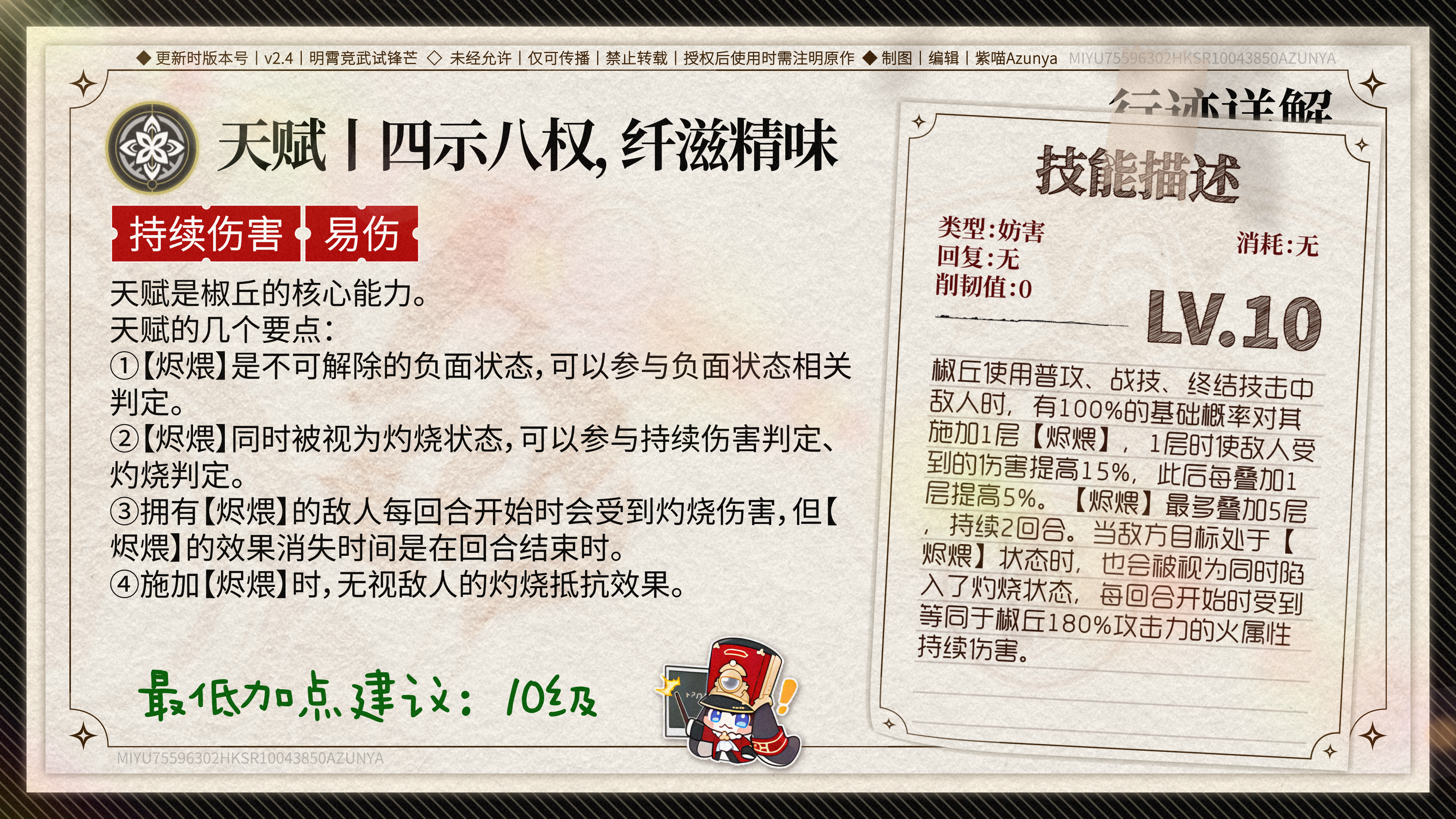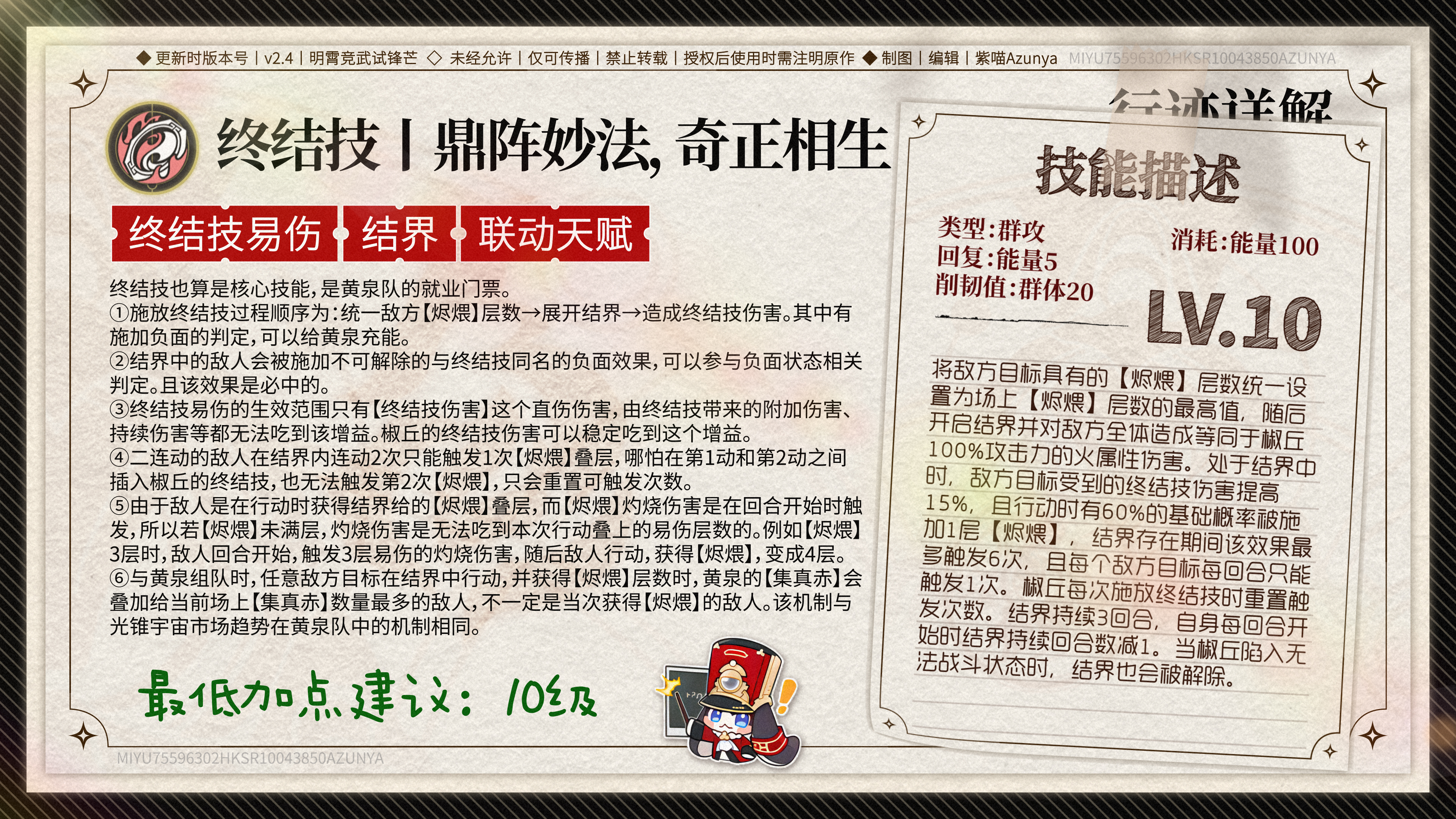 想把有限的资源用在刀刃上?那就记住:椒丘的核心竞争力在于天赋和终结技! 战技和普攻嘛,升不升级就看你心情了,反正提升的只是那点可怜的直伤倍率。 如果你是个精打细算的小能手,那就把资源留给更重要的地方吧!