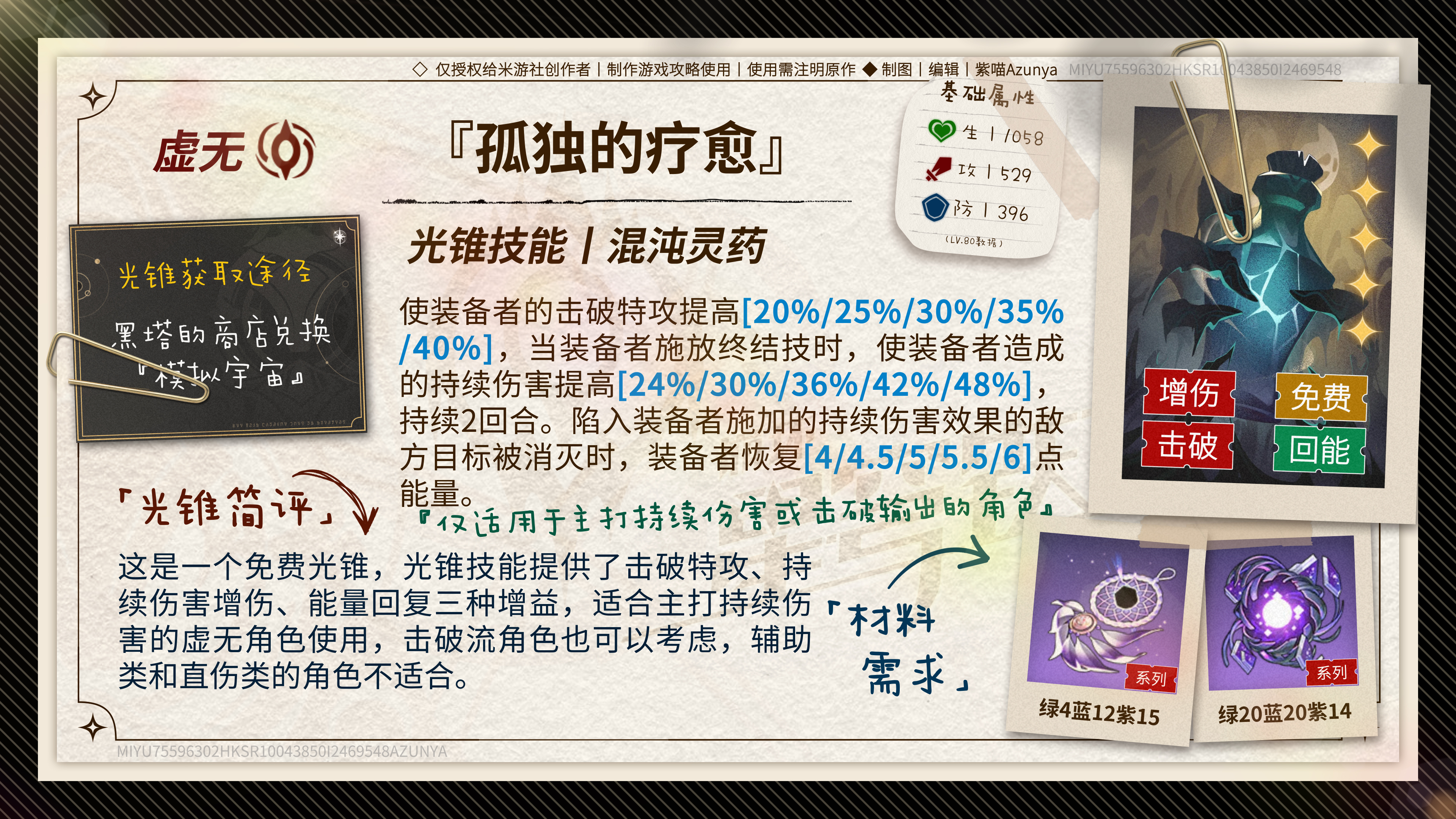 可用四:五星光锥「孤独的疗愈(虚无)」