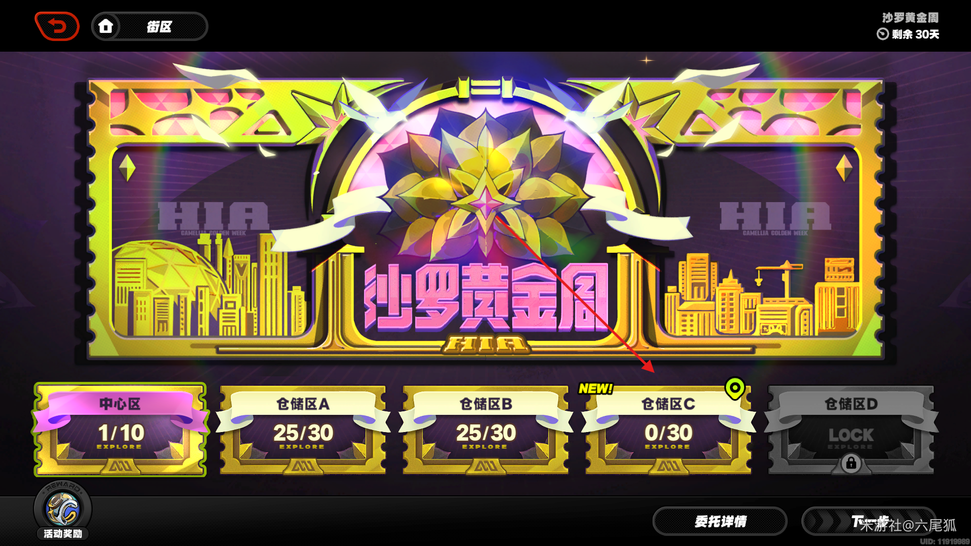 好了,正式进入今天的正题——仓储区C的探险!这个特殊委托的入口嘛,就在下图所示的位置。记住,这里可不是啥副本选择界面,每个区域只是不同的传送点而已,别想太多!