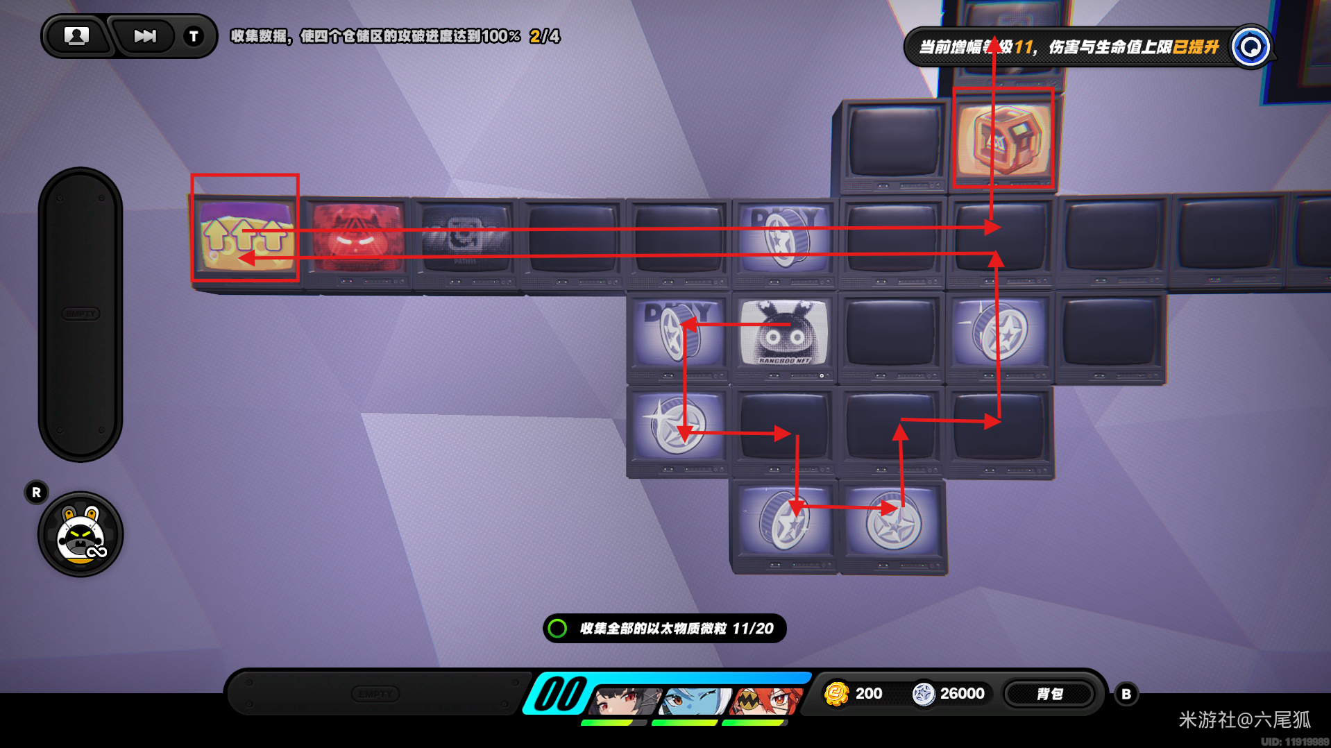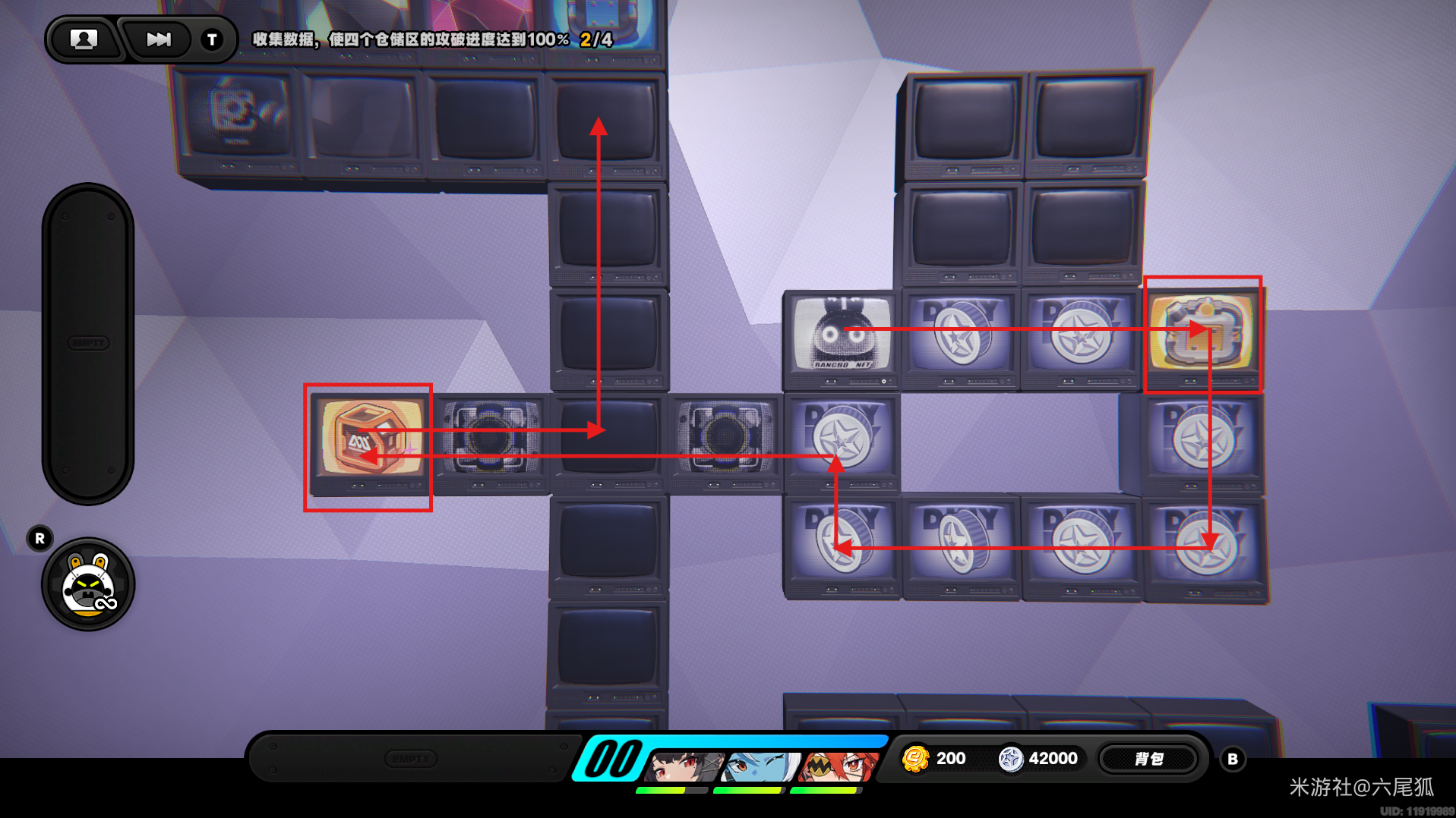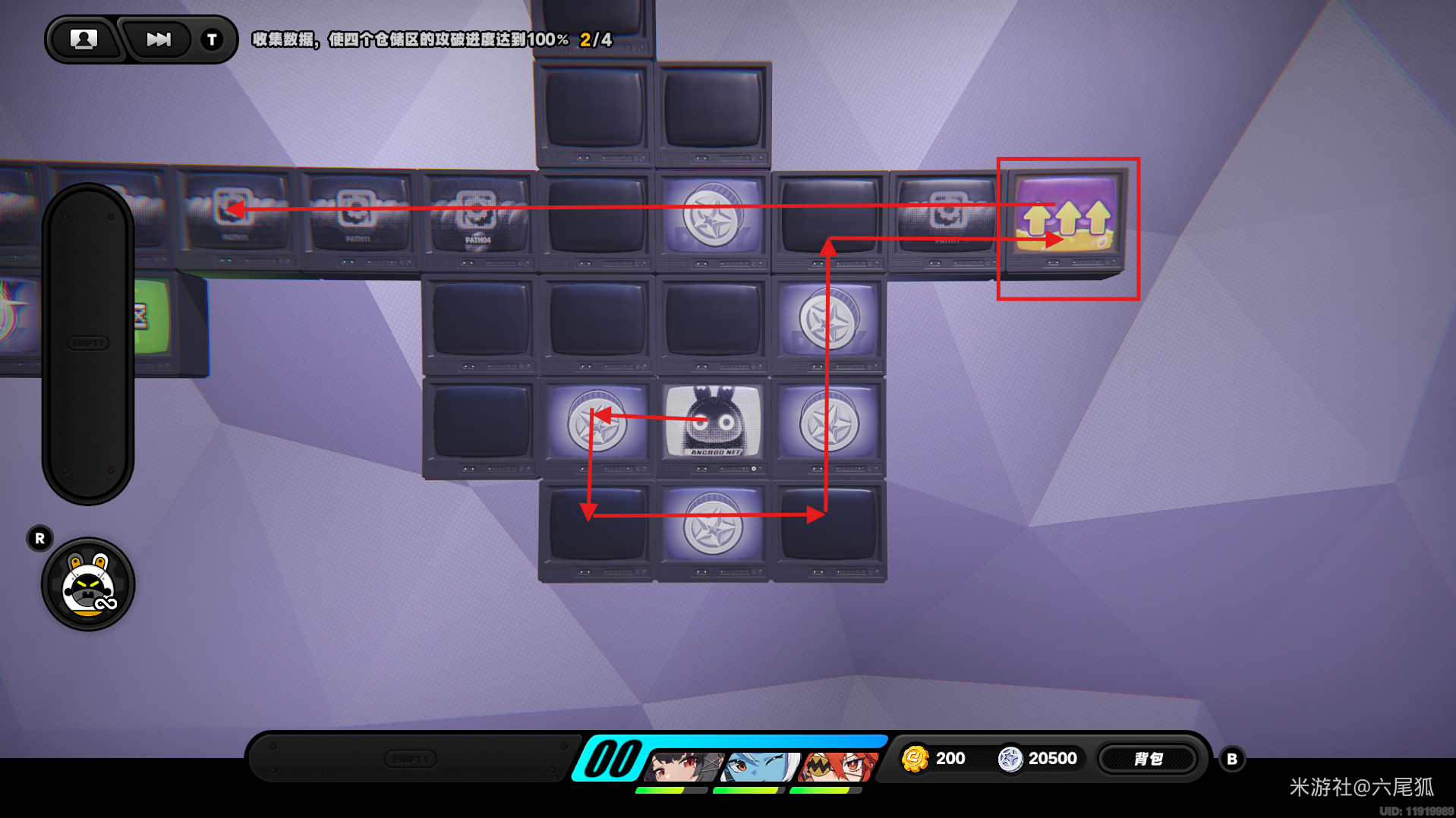 继续往下前进,注意!前方高能预警!这里有一种盾牌厚到令人发指的怪物,别跟它硬刚,直接把它推到围栏边上,来一波华丽的地图杀!接下来是一个推箱子的小游戏,不过这次的箱子变成了圆滚滚的球,一不小心就会滚到边缘。别慌,解锁推车后,按照下图所示的方法堵死,就能再次成功捕捉丁尼邦布!(当前进度:仓储区C 20%,仓储区C物资箱 5/30,物资箱总进度 56/130)