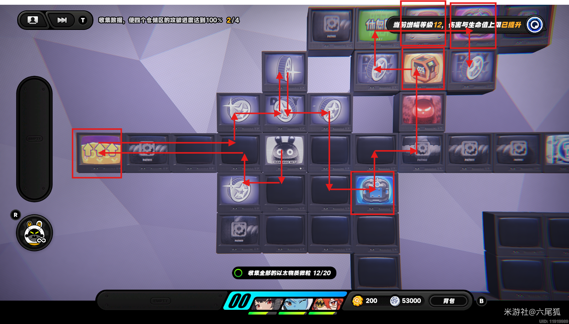 同样的配方,熟悉的味道!圆圈处增幅器伺候!方框区域仔细探索!(当前进度:仓储区C 80%,仓储区C物资箱 15/30,物资箱总进度 66/130)