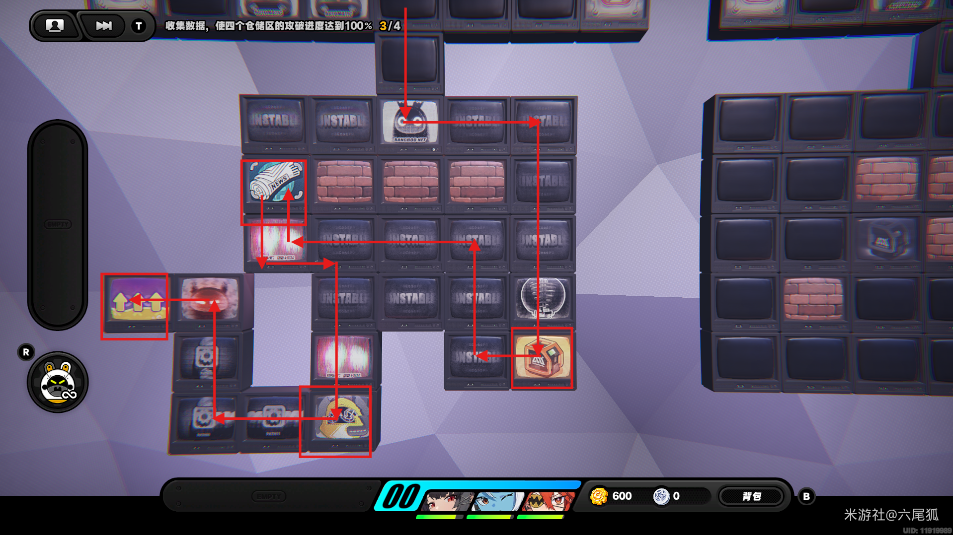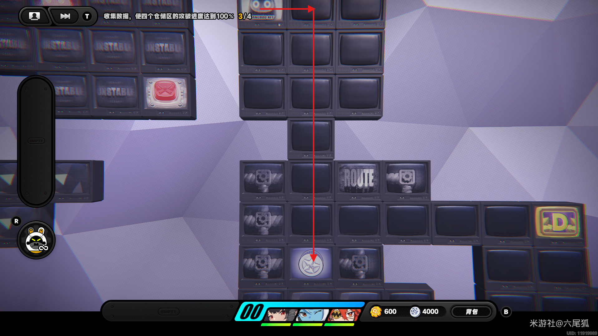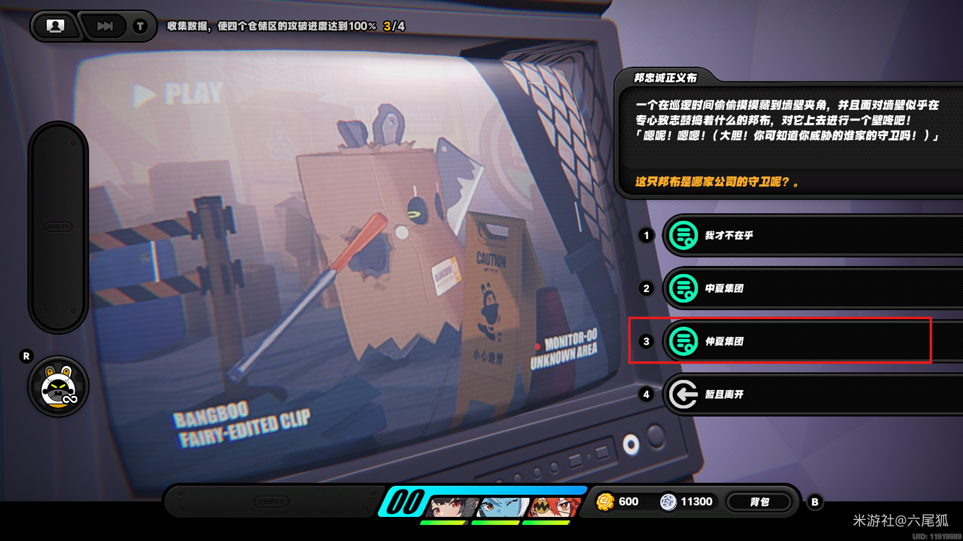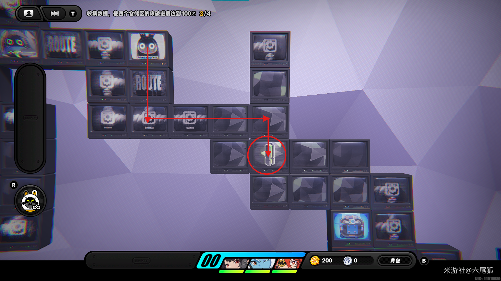 绕一圈继续向下,在圆圈处使用增幅仪。这次邦布会问你问题,答案是:3仲夏集团!答对了,继续前进!(仓储区D进度40%,物资箱5/30,钥匙2/4,总物资箱进度86/130)