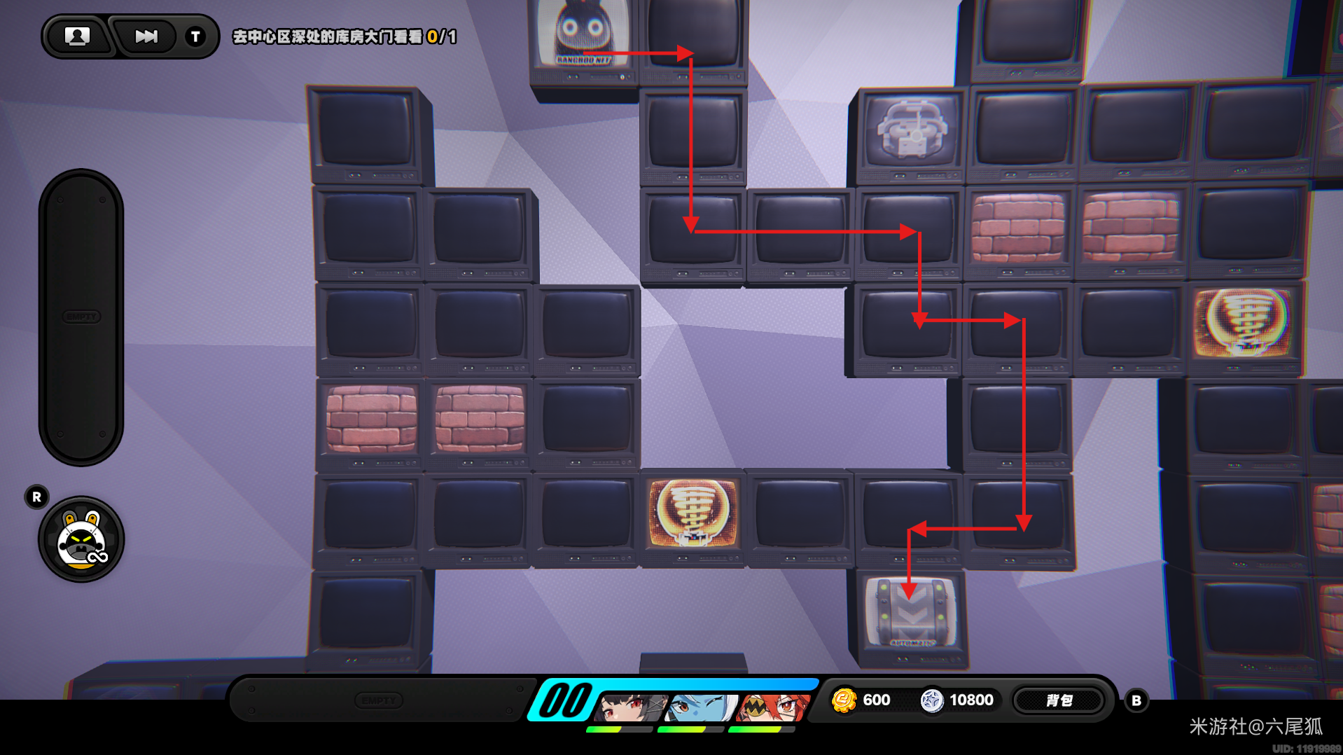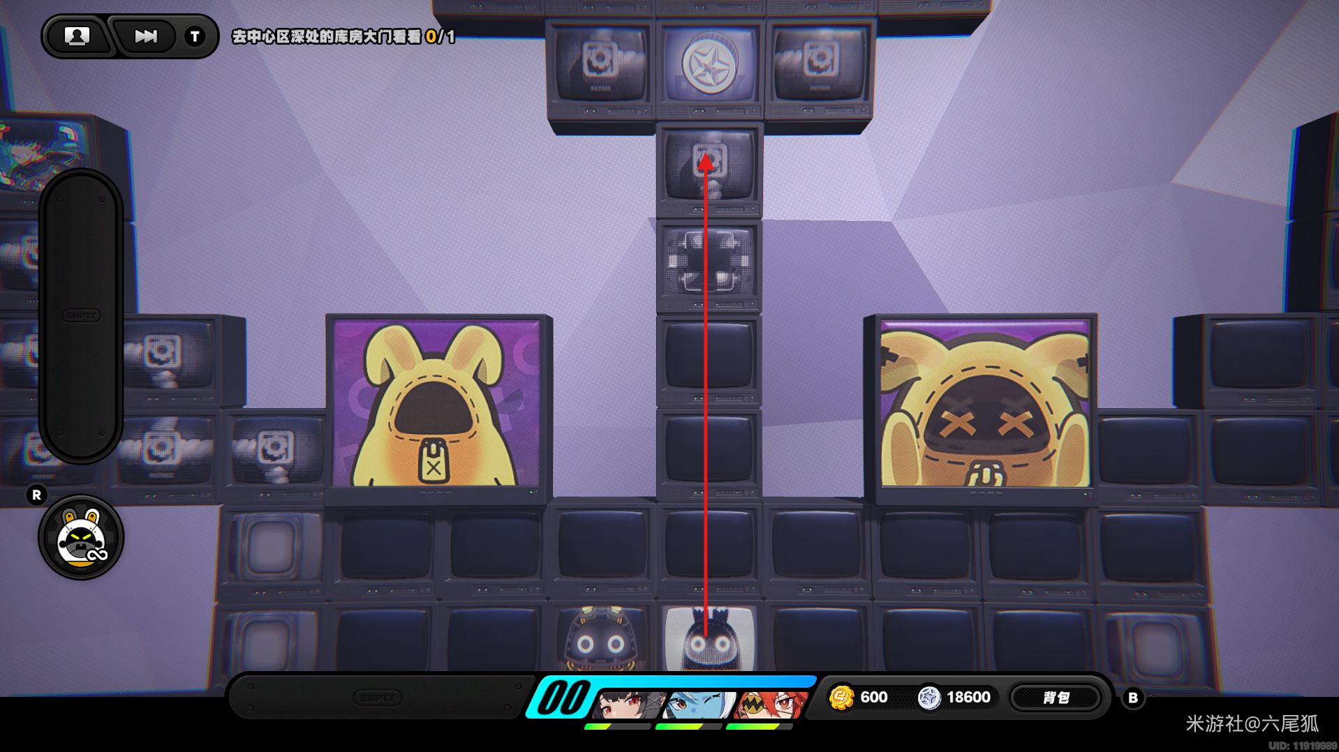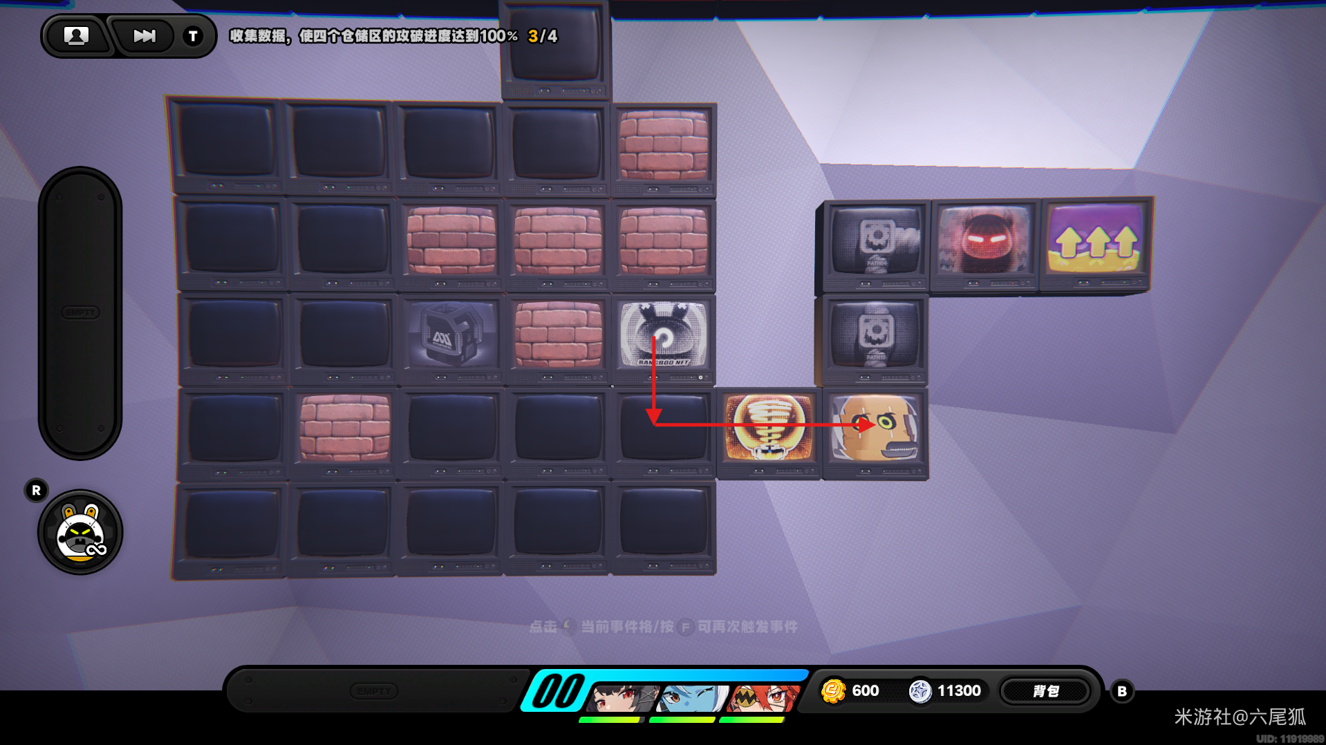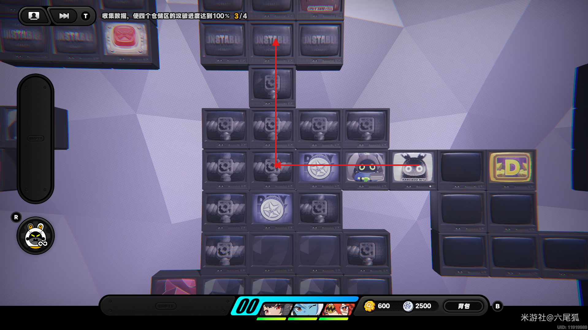 返回上方,在圆圈处使用增幅仪,这次的选择题答案是:2自恋邦布!(仓储区D进度100%,物资箱25/30,钥匙4/4,总物资箱进度106/130)