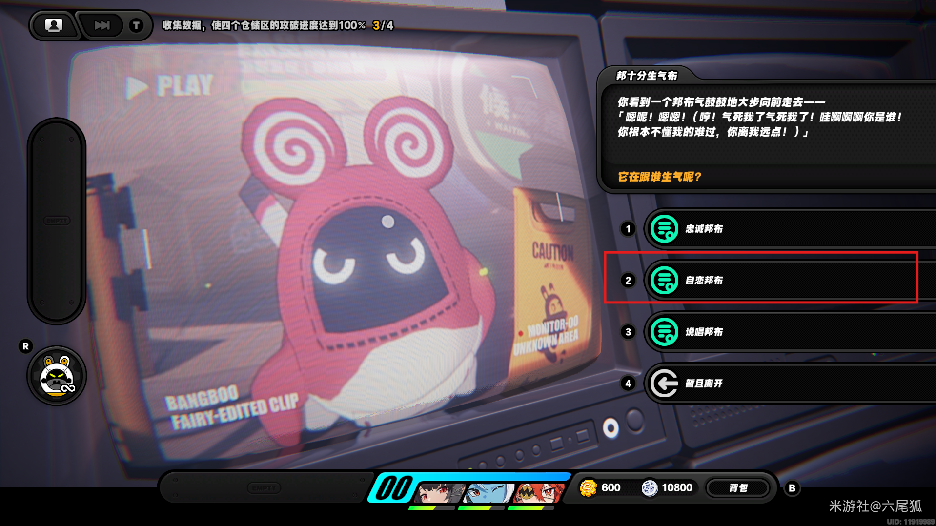 重要提示: 邦布的问题答错了没关系,不会影响任何奖励,最多就是角色掉点血而已,别太紧张!