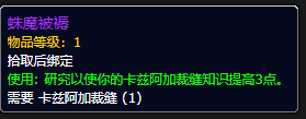 这蛛魔被褥,可不是让你晚上盖着睡觉的!它更像是一本秘籍,一本能让你卡兹阿加裁缝技能蹭蹭往上涨的“武功秘籍”。用了它,你的裁缝知识就能嗖嗖嗖地提升3点!别小看这3点,关键时刻能让你做出更高级的装备,秒杀那些还在苦苦练级的菜鸟!