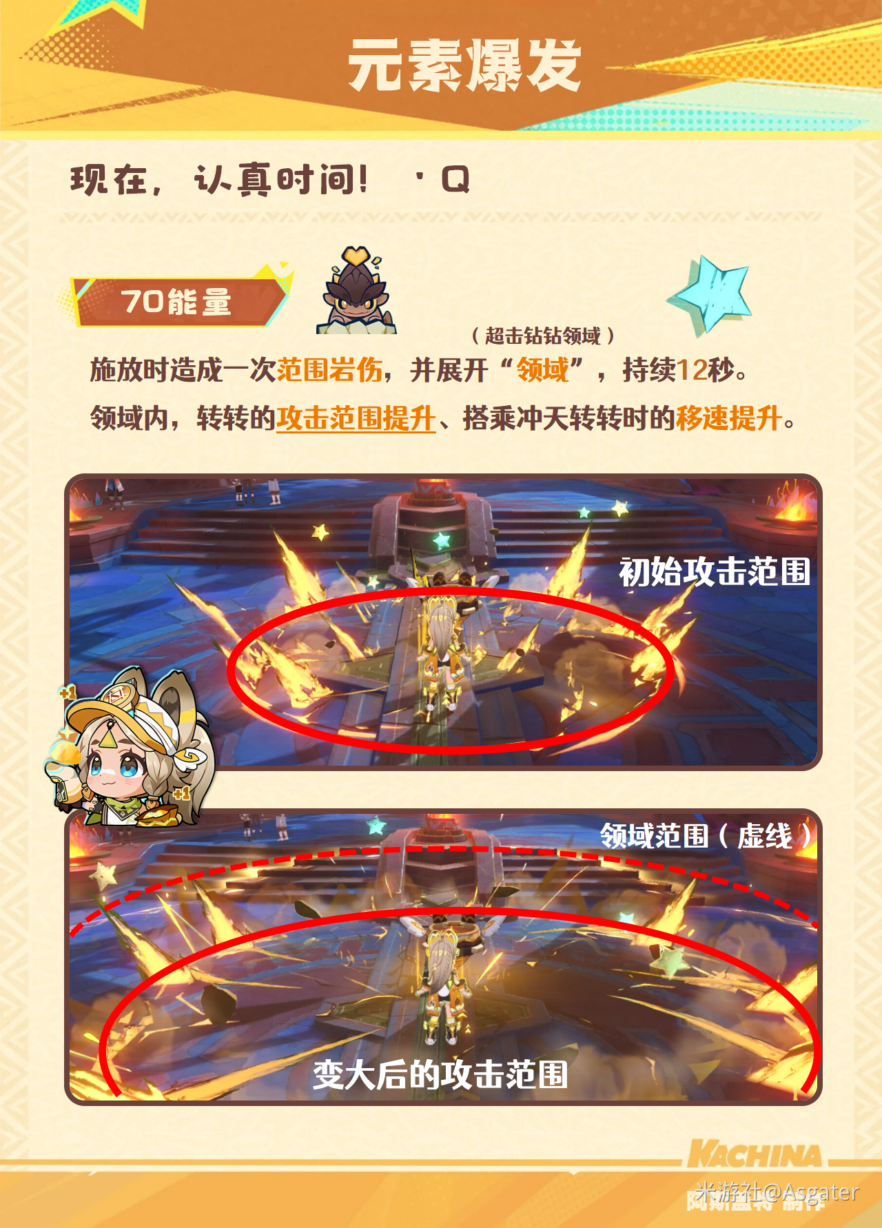 ◆ 卡齐娜没有岩伤普攻,普攻的使用频率不高;即使是站场玩法,也是利用战技搭乘转转,持续点按普攻,所以普攻天赋可以忽略!