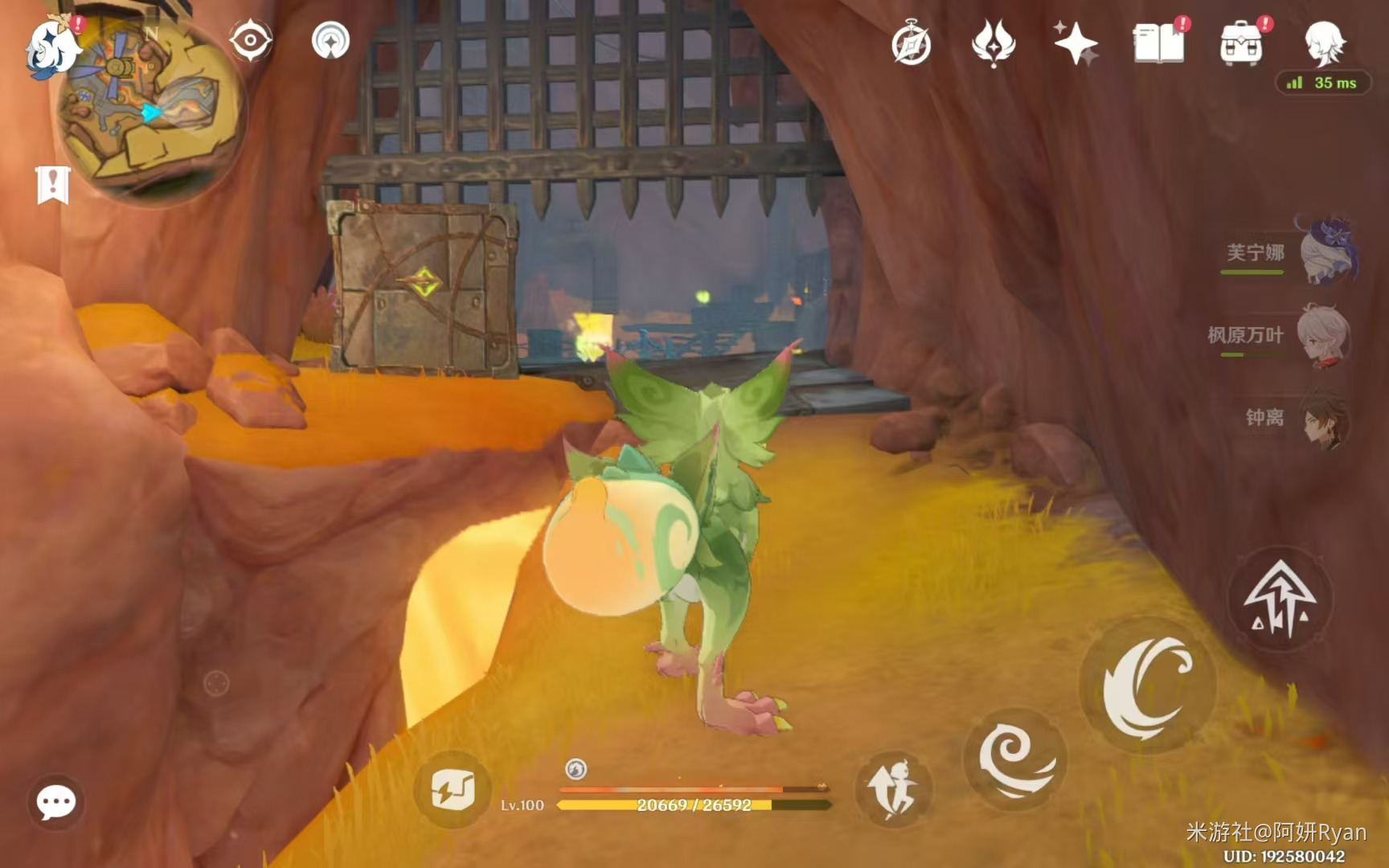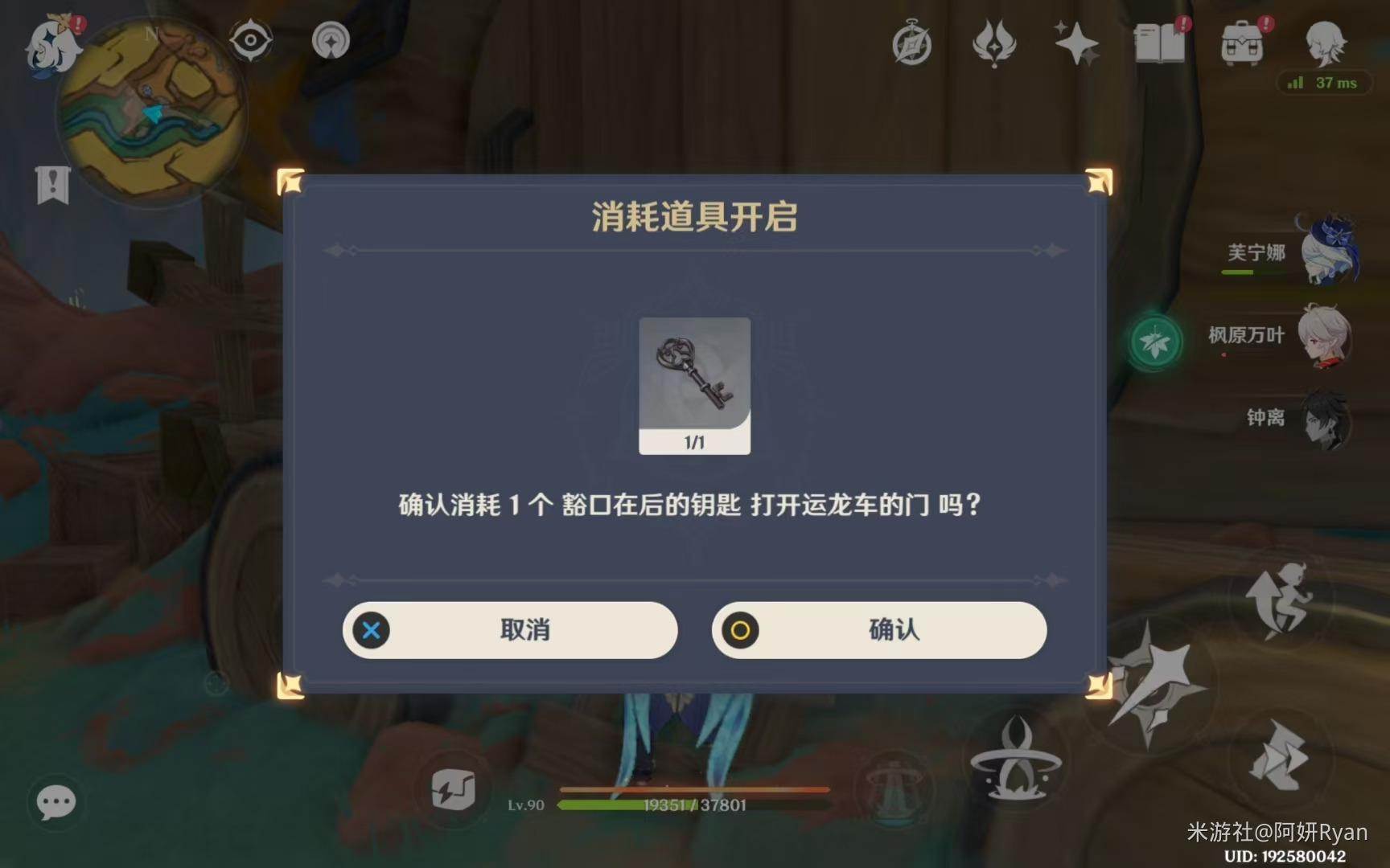终于到了最后的时刻! 把水珠们全部就位,让它们华丽地旋转180º! 然后... 熟悉的味道,熟悉的配方,愚人众再次登场! 花个一分钟,和他们“亲切友好”地交流一下,一个闪闪发光的华丽宝箱就会出现在你眼前! 注意! 宝箱里藏着一把关键钥匙,只有拿完宝箱才能解锁哦! 钥匙的“座驾”就在拿第二颗水珠的地方,别忘了去认领!