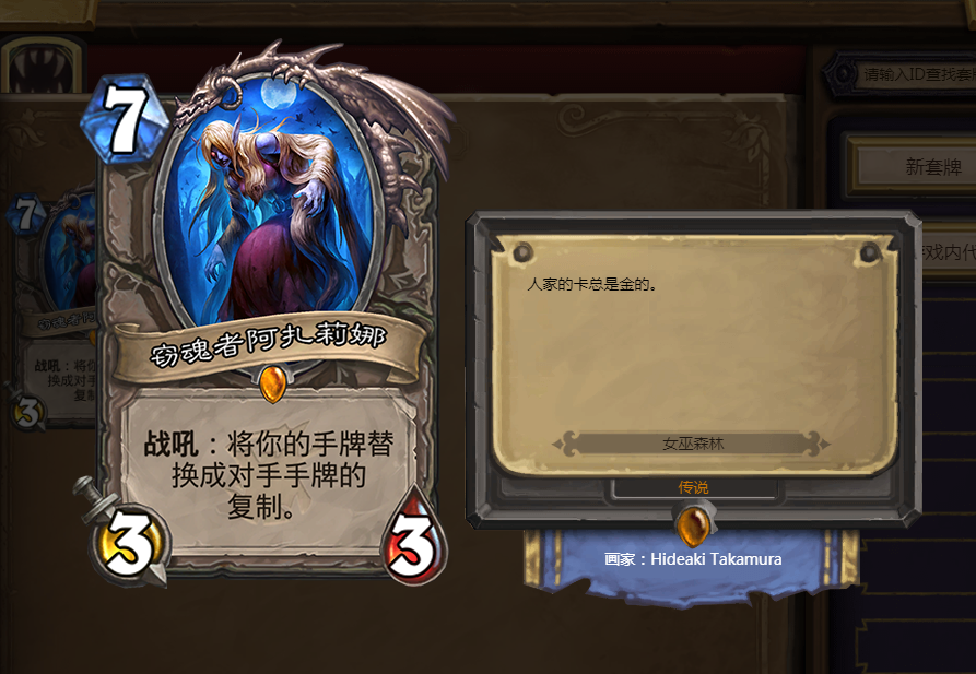 虽然这张卡身材不是大哥,但是效果非常不错,使用了星界沟通后的我们恰好是非常缺少手牌的,这时候来一个窃魂者,可以复制对手的手牌,我们不仅可以看到对手手里有什么,了解他们的套路,还可以把他们的手牌拿来为我们所用。俗话说,知己知彼,百战不殆,更好的了解对手,才能更加接近胜利。