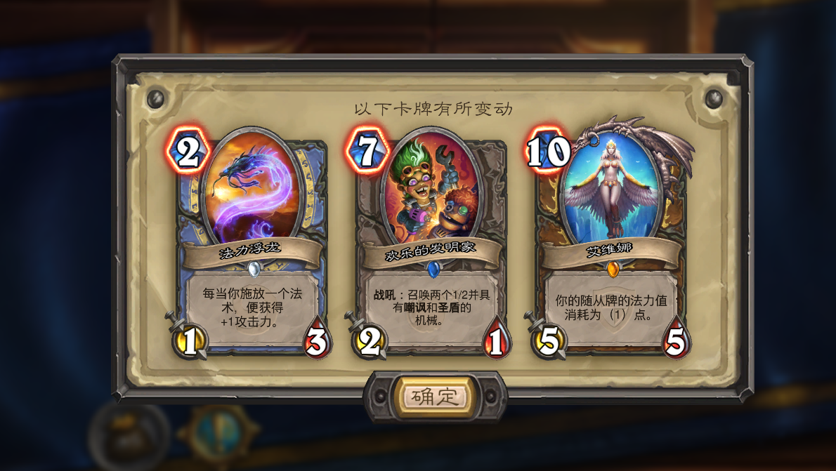 炉石传说的改动已经实装,可以说这几张牌都基本废了,建议大家直接分解,全额返尘,就算之后有需要他们的卡组再合回来也不会亏,今天我们看一套没受到这个改动影响的卡组吧,那就是k神的这套奥秘猎。