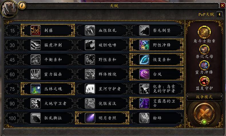 按照熊坦天赋倒数第三层可以分为三大流派,也就是那一层的丛林、月火、化身3个不同天赋来决定了我们不同的手法和循环。以及因配合该层天赋来搭配选择其他的天赋技能。