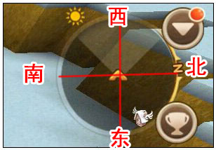 然后我们需要结合游戏右上角的小地图来找坐标,N指向是北方,N的相反方向是南,N的左边是西,N的右边是东。