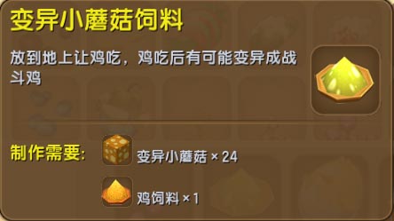 鸡食用变异小蘑菇饲料后,会变异成为战斗鸡。
