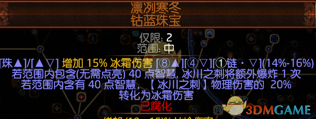 基本要求暴击率,冰冷附加,混沌附加3条 2E