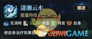 第三行选择潇湘云水,爆发治疗技能,配合拂拨万象的时候治疗量十分可观,一般是打小怪时刚开怪的时候会开,或者全团掉血的时候会开,其他看情况。