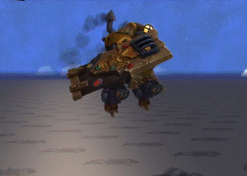关于这个坐骑的描述是这样的,加里维克斯在战斗中,他那镀金的死亡机器跑到了梅卡托克手中,而且它夸张地表现出了极高的地精科技天赋,在风格上和梅卡托克还很搭。
