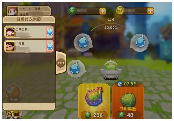 在家园左侧点开好友列表,可以如果好友头像边上有一个小水滴的图案,说明这个好友的植物需要浇水;