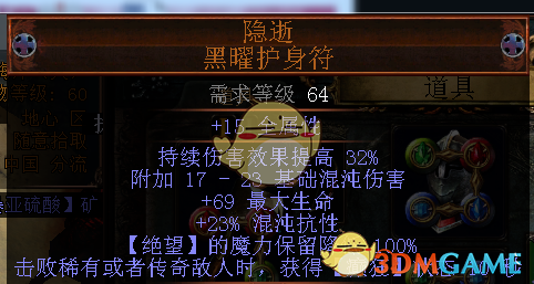 项链:隐逝 绝望诅咒无魔力保留 开一个诅咒光环