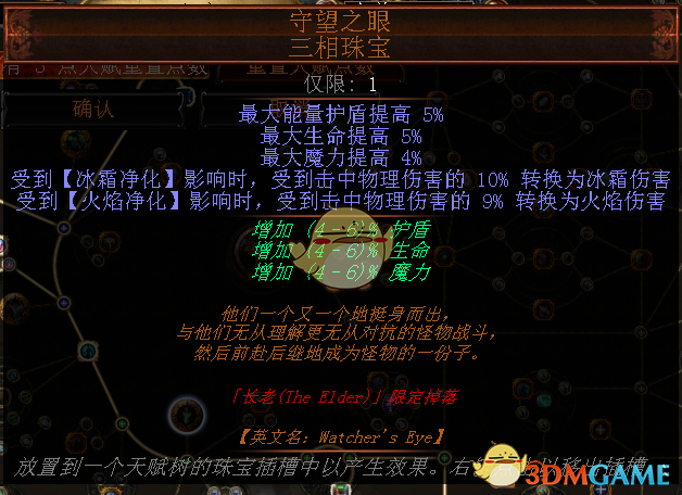 盾牌:圣记盾 腐化物理转元素8% 切记少一点都不行 技能连法 受伤-号召-巨石魔像