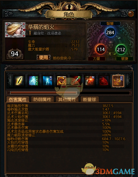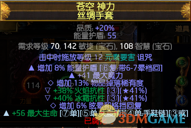 手套:高血高魔高抗高攻速瓦出12级元素要害