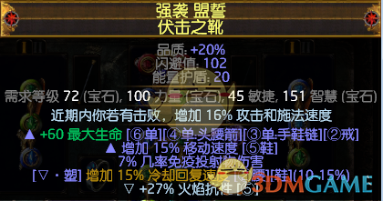 淬火之魂1颗、灵体转换3颗、征服者力量1颗、生命魔力攻速深渊珠宝3颗