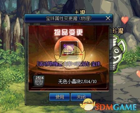 使用宝珠属性变更罐子后需要花费10个无色小金块,会随机变更为攻击力或者是暴击率宝珠,我很开心因为转换成了攻击力宝珠