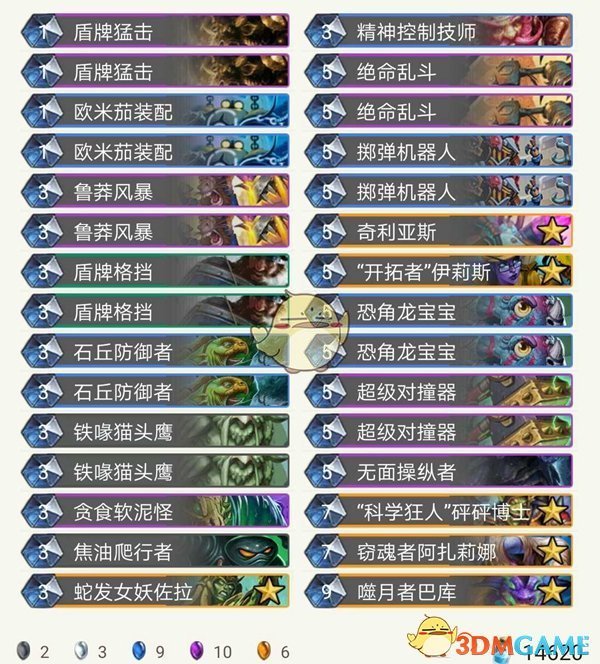推荐理由:超高护甲,开包达人;奇数战是优秀的抗快攻卡组,焦油,130,奇利亚斯都能有效针对快攻,作为慢速卡组,后期能力肯定不能差,砰砰博士不仅能打卡差,机械也有了突袭效果,解场能力不俗,虽然英雄技能是随机的,但是战士的解牌多,这个问题可以忽略,唯一的缺点就是对局时间,内战时真的尴尬。