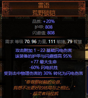电甲:有很强物理减伤的能力,大大降低护甲需求(1000-1500就够了)。我在攻坚T18时选择了电甲+冰霜净化的组合,做到较高物理减伤的同时有80的冰抗上限。缺点是配装时电抗稍微麻烦一点,但也不难,因为有冰霜净化,对冰抗要求不高,总属性点是足够的。这是我的衣服: