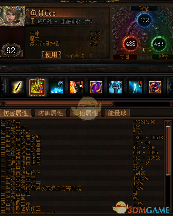 防御面板:虽然站街抗性是没到80,但是战斗中我们是有红球的,还有药,所以不用担心。